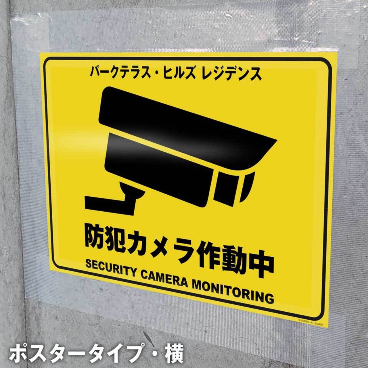 【防犯カメラ作動中】屋外対応・看板ポスター(横型-02)送料無料