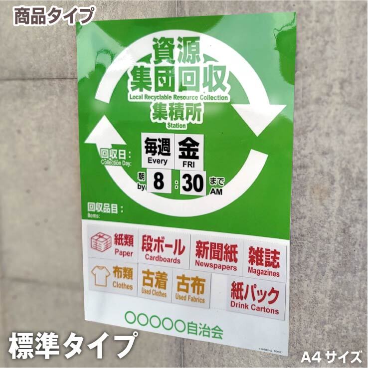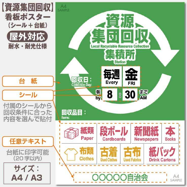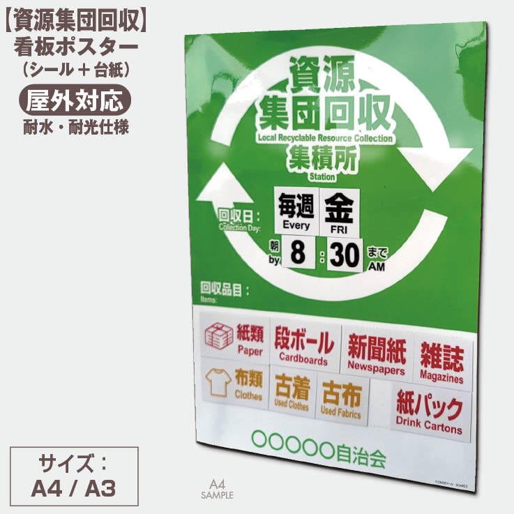 【資源集団回収】看板ポスター(シール+台紙)| 屋外対応(送料無料)
