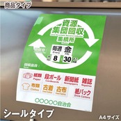 資源集団回収の条件に該当する【回収日】(毎週水、第2・4 土など)や【回収品目】(段ボール、雑誌、古布、アルミ缶など)の内容を付属シールの中から選んで、台紙部に貼り付けてご使用ください。