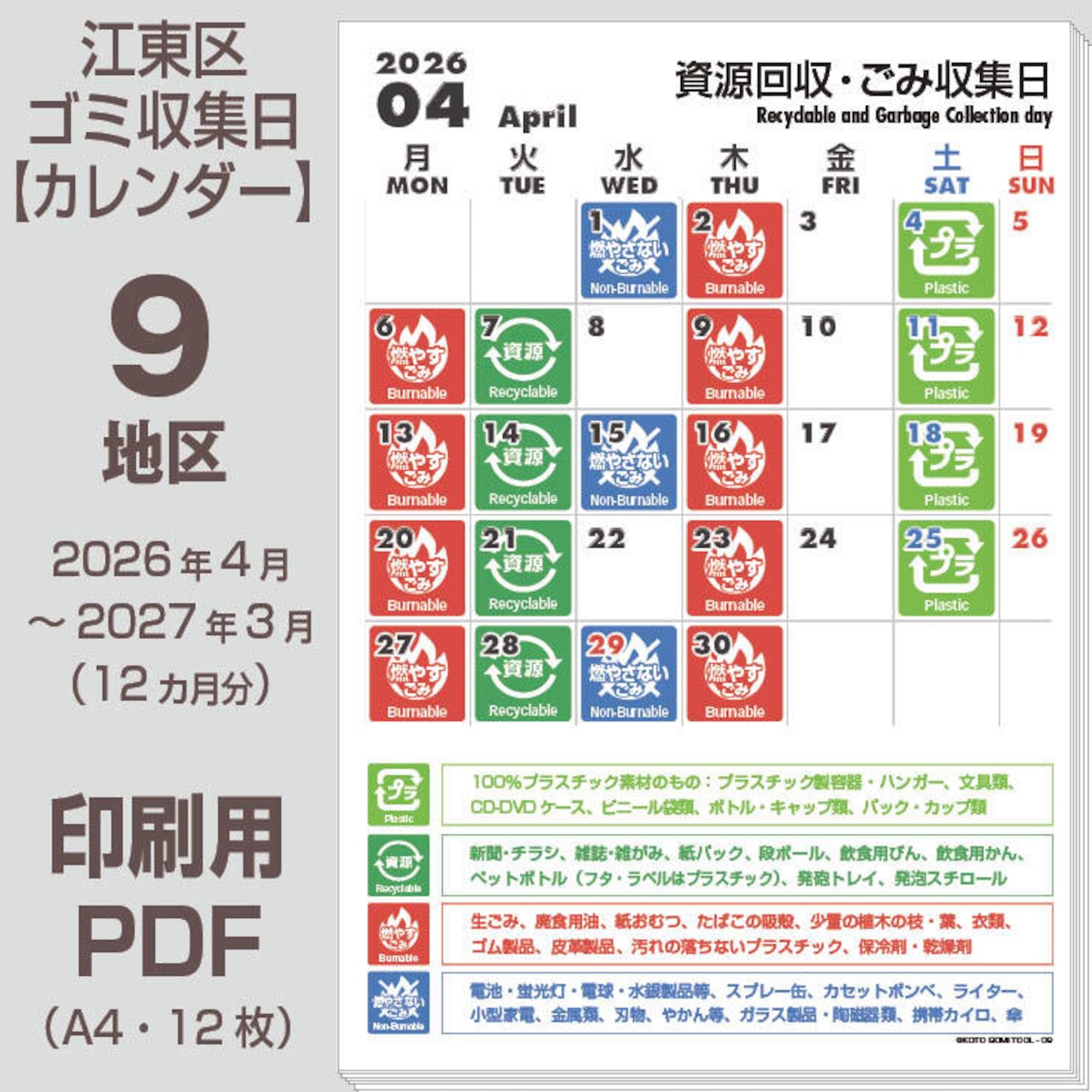 江東区ゴミの日カレンダーPDF(2026年度版)- 9地区