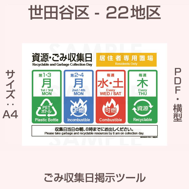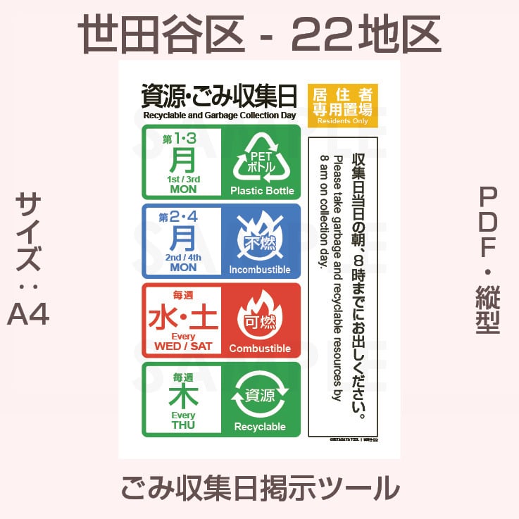 世田谷区ゴミ収集日-22地区(印刷用PDF)