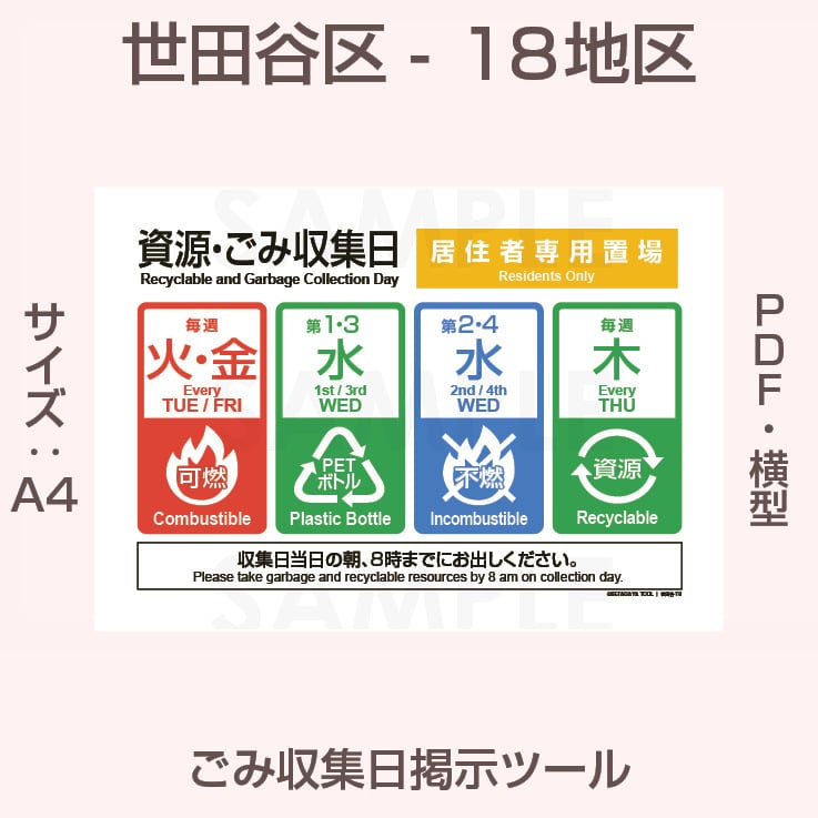 世田谷区ゴミ収集日-18地区(印刷用PDF)