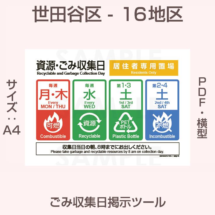 世田谷区ゴミ収集日-16地区(印刷用PDF)
