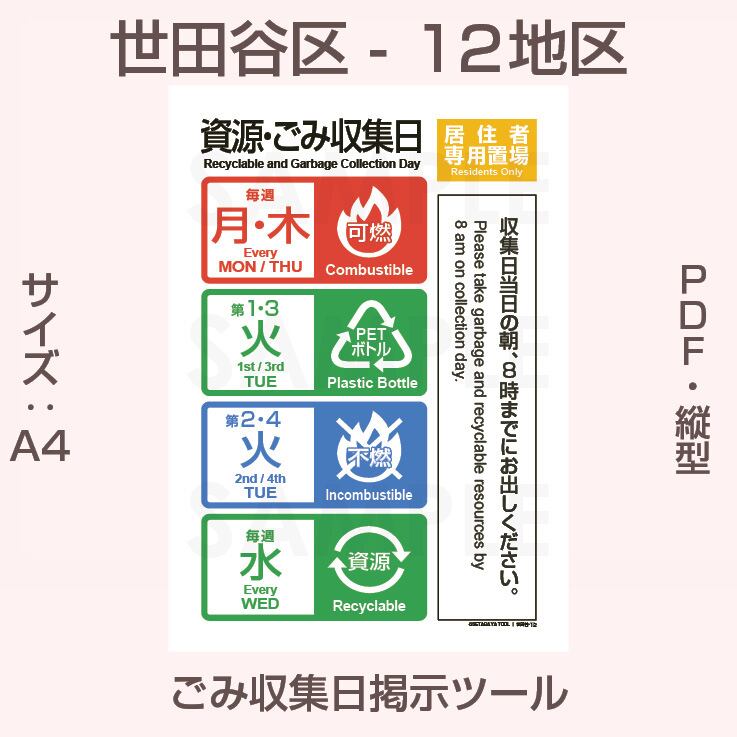 世田谷区ゴミ収集日-12地区(印刷用PDF)