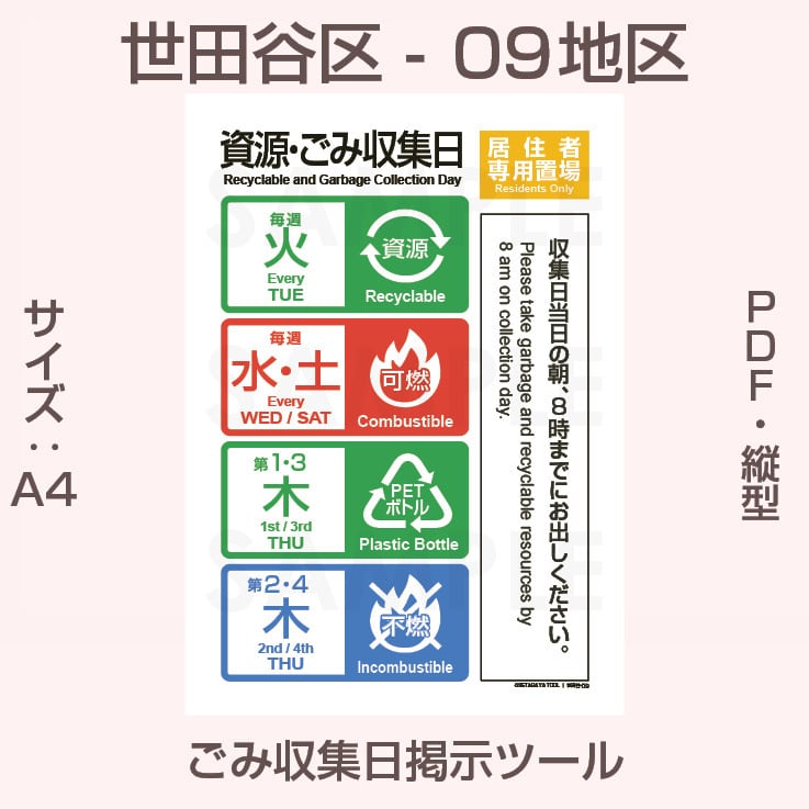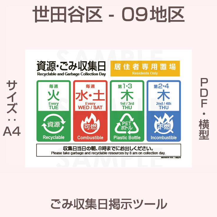 世田谷区ゴミ収集日-09地区(印刷用PDF)