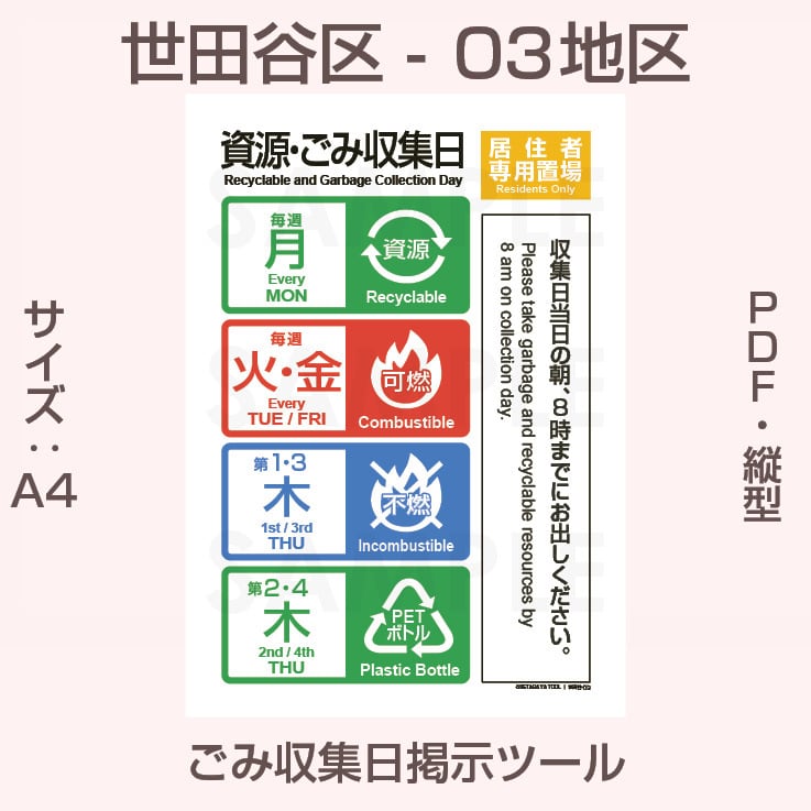 世田谷区ゴミ収集日-03地区(印刷用PDF)