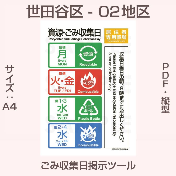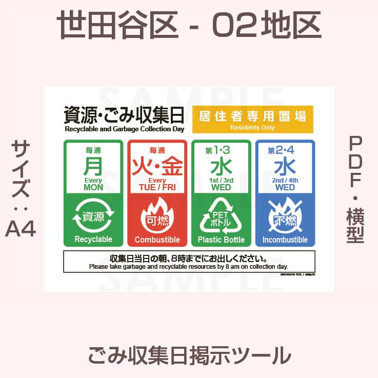 世田谷区ゴミ収集日-02地区(印刷用PDF)