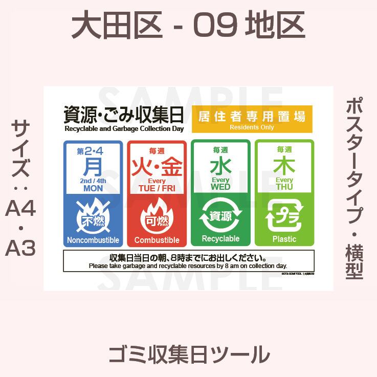 ポスタータイプ・横型・太田区ゴミ収集日-09地区