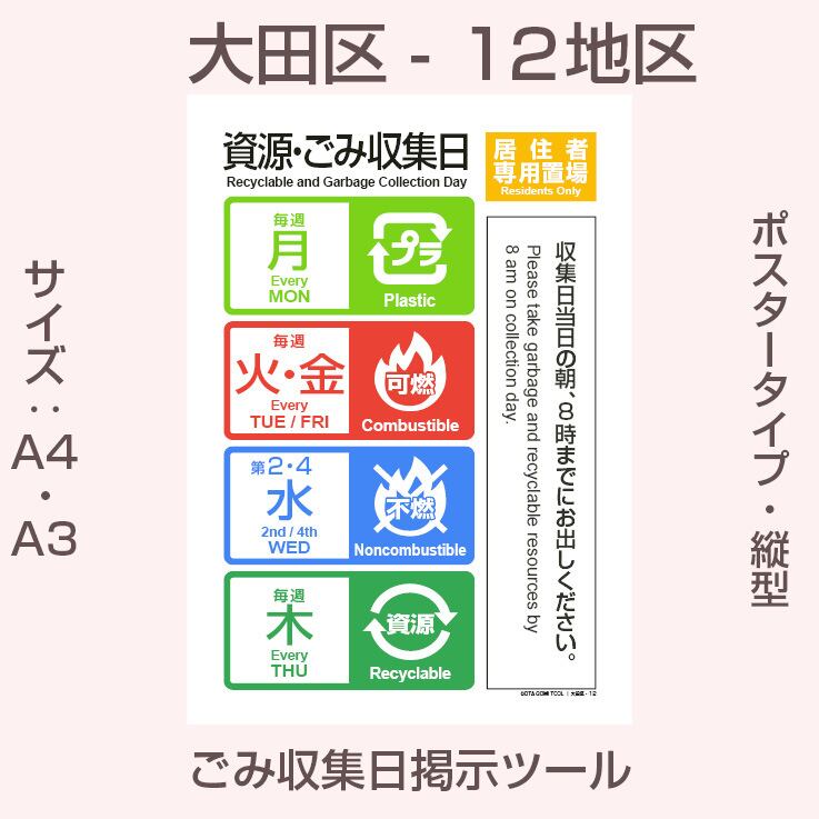 ポスタータイプ・縦型・太田区ゴミ収集日-12地区